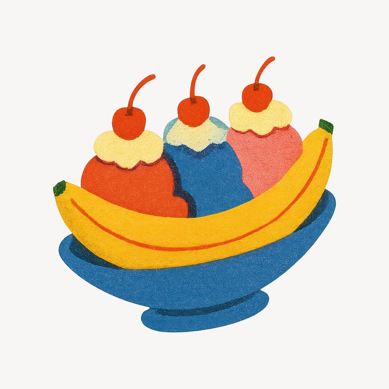 Colorful banana split illustration. https://www.rawpixel.com/image/22333382/colorful-banana-split-illustrationView license