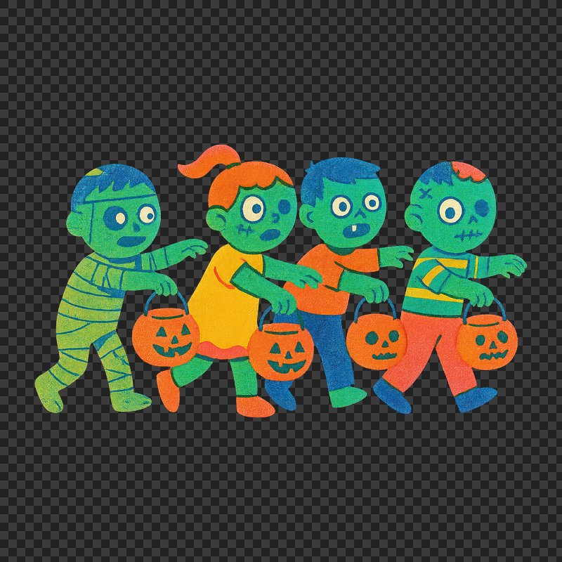 PNG Colorful children trick-or-treating illustration. https://www.rawpixel.com/image/21804653/png-colorful-children-trick-or-treating-illustrationView license