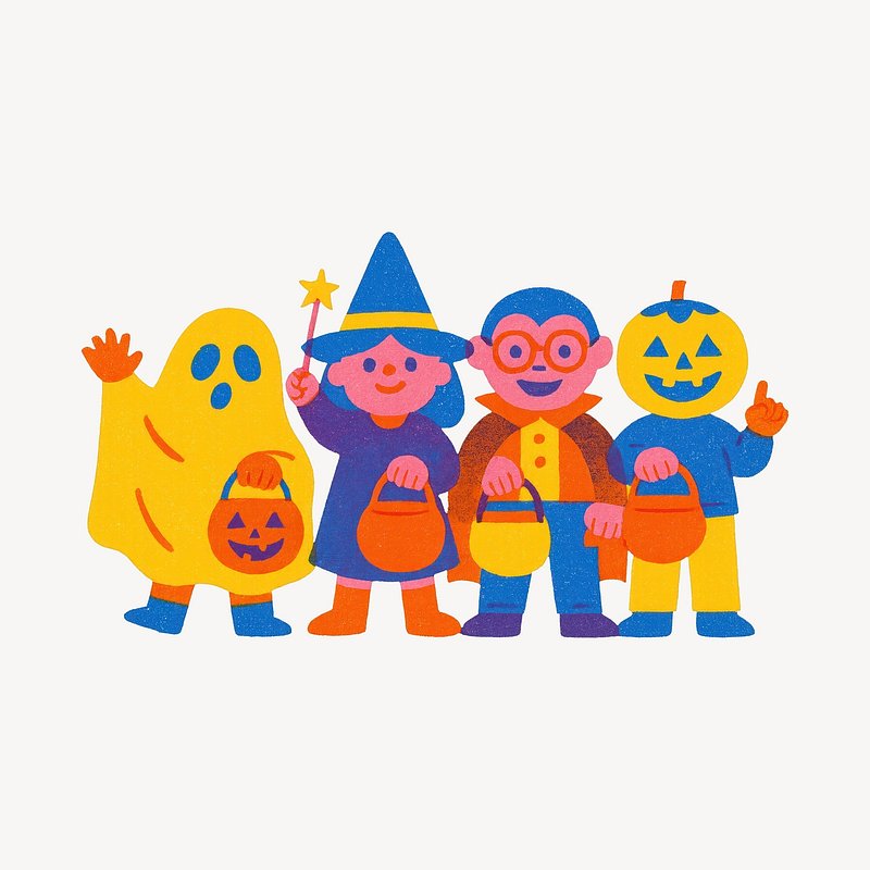 Colorful Halloween children illustration https://www.rawpixel.com/image/22340733/colorful-halloween-children-illustrationView license