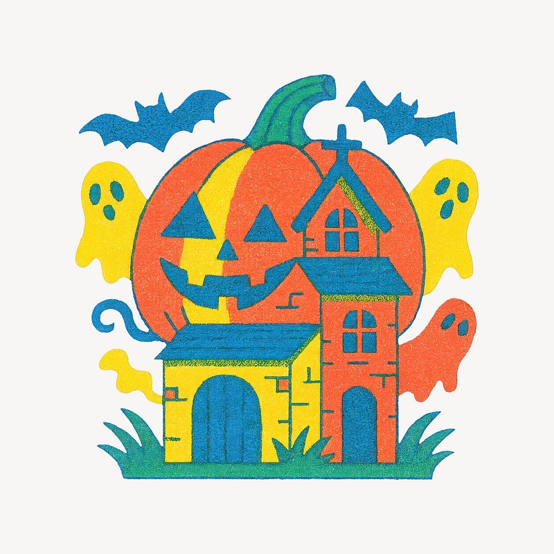 Colorful Halloween haunted house illustration. https://www.rawpixel.com/image/22335338/colorful-halloween-haunted-house-illustrationView license
