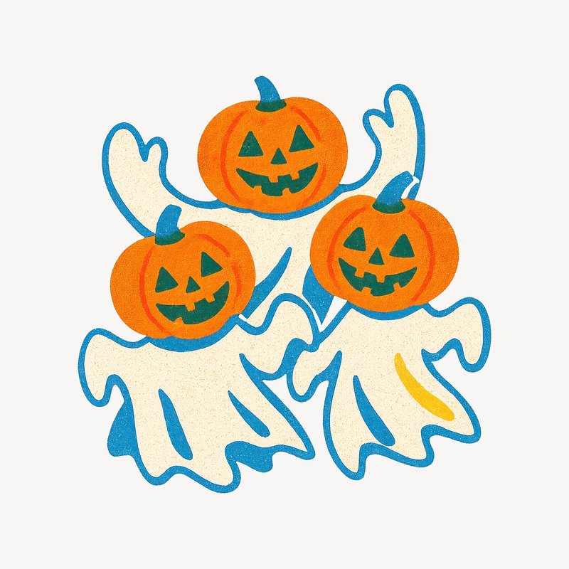 Playful ghostly pumpkins illustration. https://www.rawpixel.com/image/22324809/playful-ghostly-pumpkins-illustrationView license