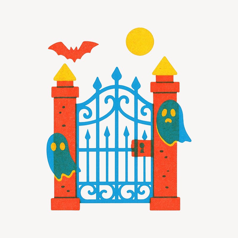 PNG Colorful spooky gate illustration. https://www.rawpixel.com/image/21804526/png-colorful-spooky-gate-illustrationView license