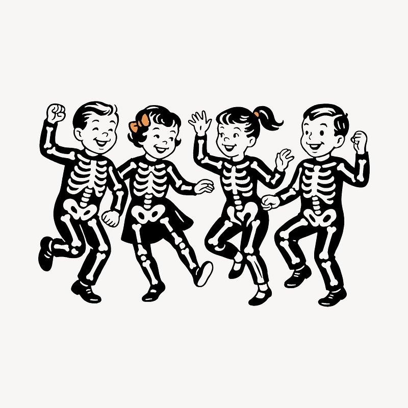 Dancing skeleton children illustration https://www.rawpixel.com/image/22113720/dancing-skeleton-children-illustrationView license