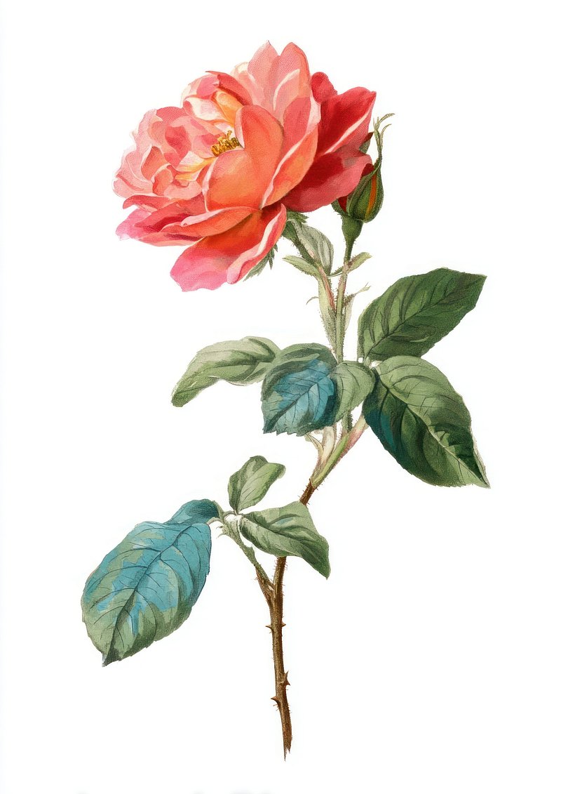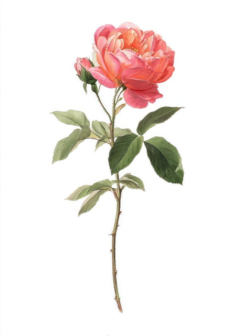 Elegant pink rose botanical illustration. https://www.rawpixel.com/image/25628156/elegant-pink-rose-botanical-illustrationView license