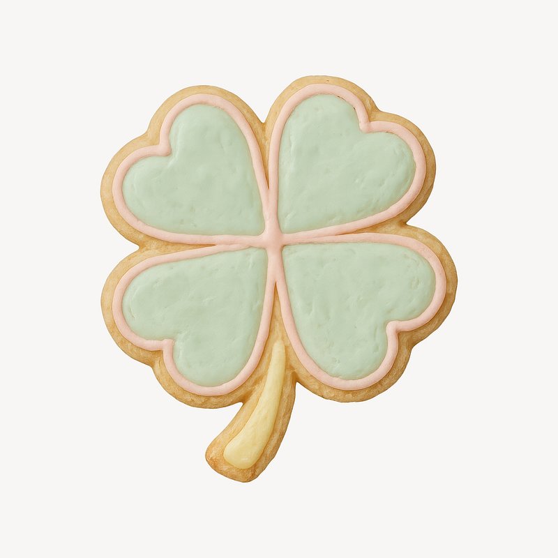 PNG Clover-shaped frosted cookie illustration. https://www.rawpixel.com/image/24602327/png-clover-shaped-frosted-cookie-illustrationView license