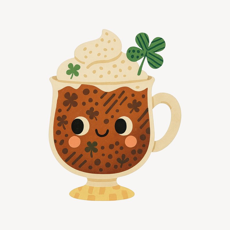 Cute Irish coffee illustration. https://www.rawpixel.com/image/23109607/cute-irish-coffee-illustrationView license