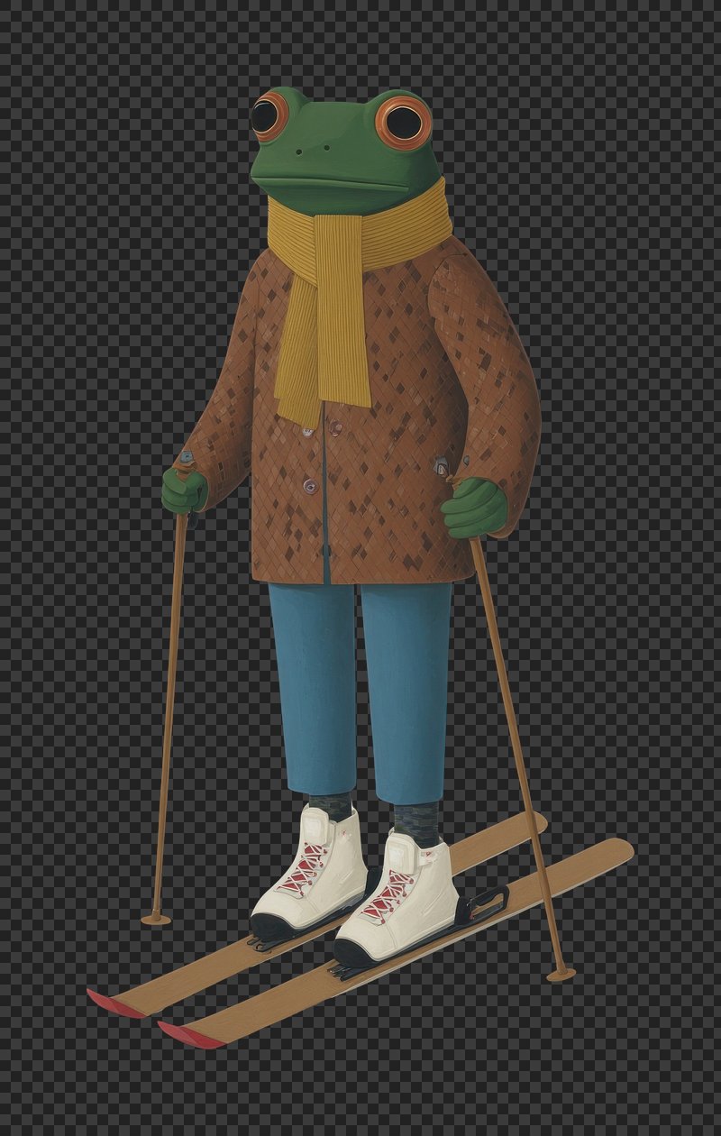 PNG Frog skiing in winter attire. https://www.rawpixel.com/image/24019684/png-frog-skiing-winter-attireView license