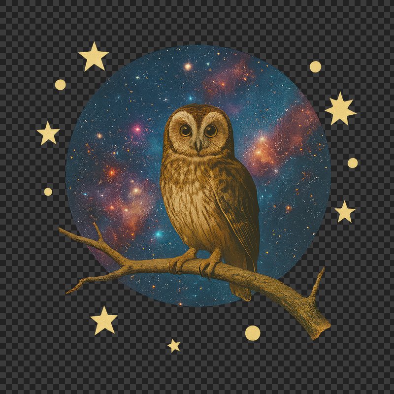 PNG Owl stargazing cosmic branch https://www.rawpixel.com/image/24266618/png-owl-stargazing-cosmic-branchView license