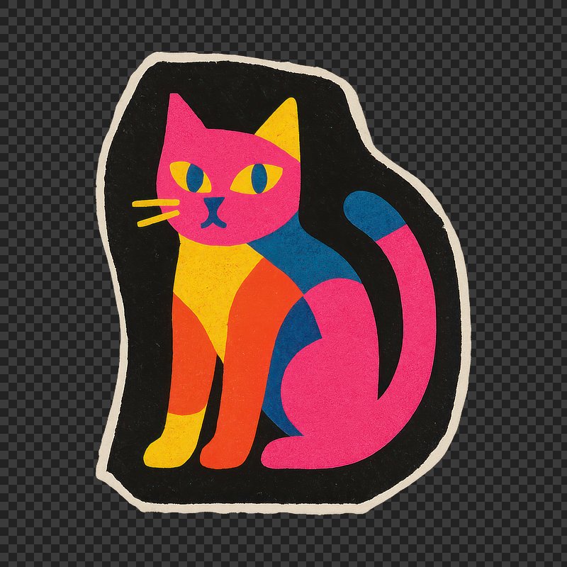 PNG Colorful abstract cat illustration. https://www.rawpixel.com/image/24503904/png-colorful-abstract-cat-illustrationView license