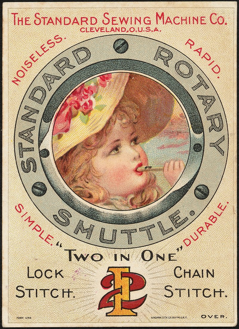 The Standard Rotary Shuttle - Noiseless. Rapid. Simple. Durable. "Two in one" lock stitch, chain stitch. https://www.rawpixel.com/image/8908779/image-arts-vintage-public-domainFree Image from public domain license