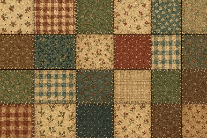 Blue and beige patterned fabric squares of various sizes sewn onto a pieced together, tan fabric background; two light beige… https://www.rawpixel.com/image/7637728/image-background-art-lightFree Image from public domain license