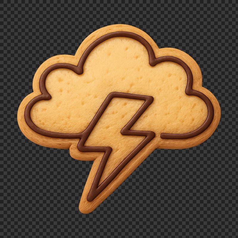 PNG Cloud cookie with lightning. https://www.rawpixel.com/image/24230307/png-cloud-cookie-with-lightningView license