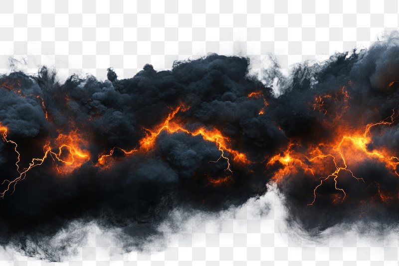 PNG Black storm clouds with orange lightning and smoke fire atmosphere outdoors. https://www.rawpixel.com/image/17341665/png-fire-cloudsView license