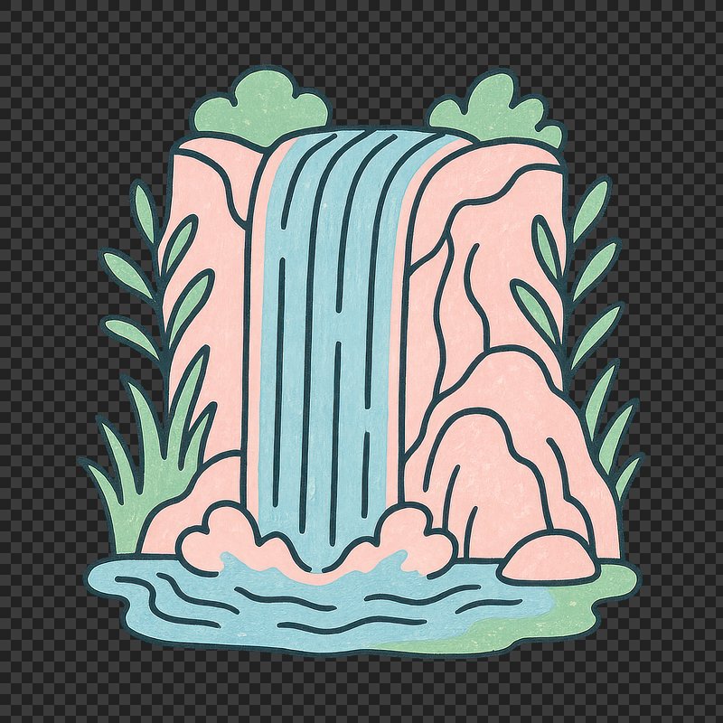 PNG Whimsical waterfall nature illustration. https://www.rawpixel.com/image/23760783/png-whimsical-waterfall-nature-illustrationView license