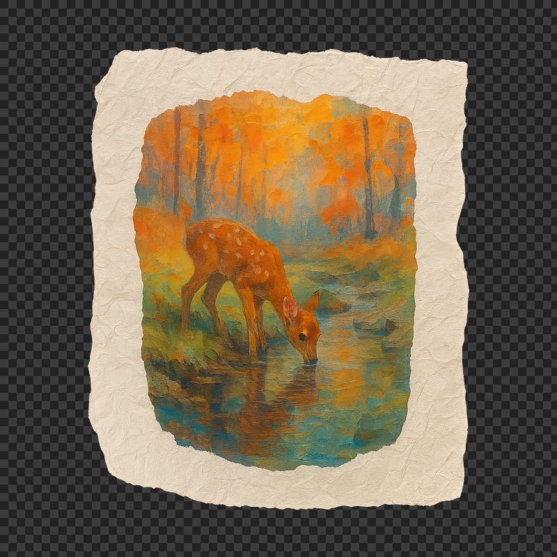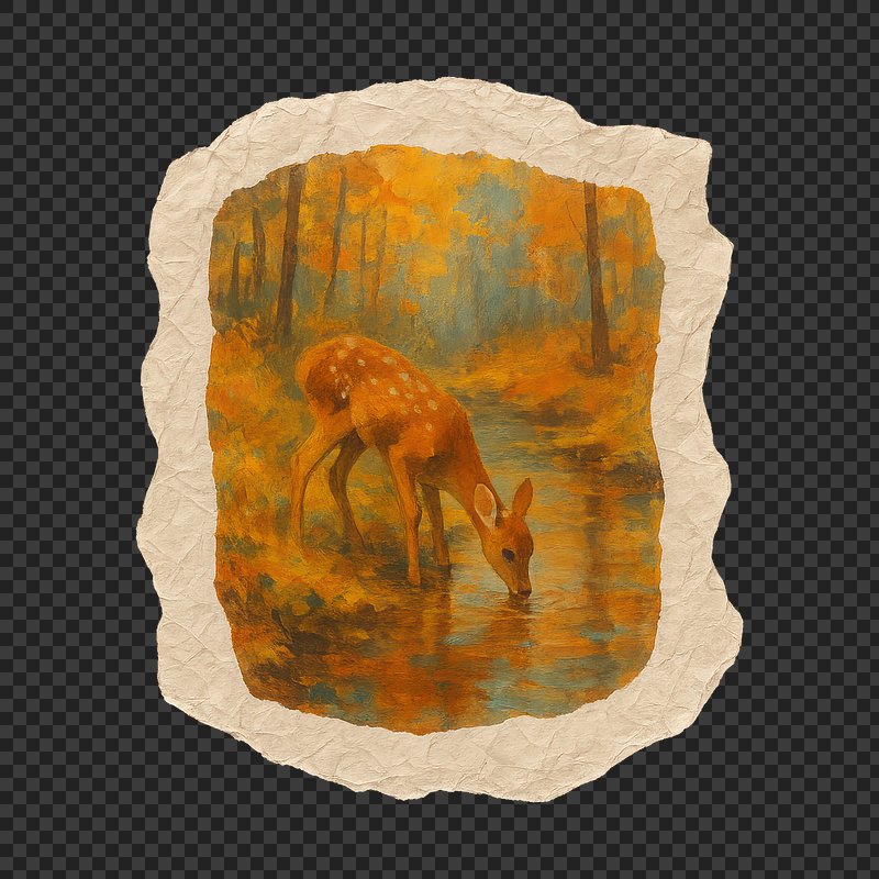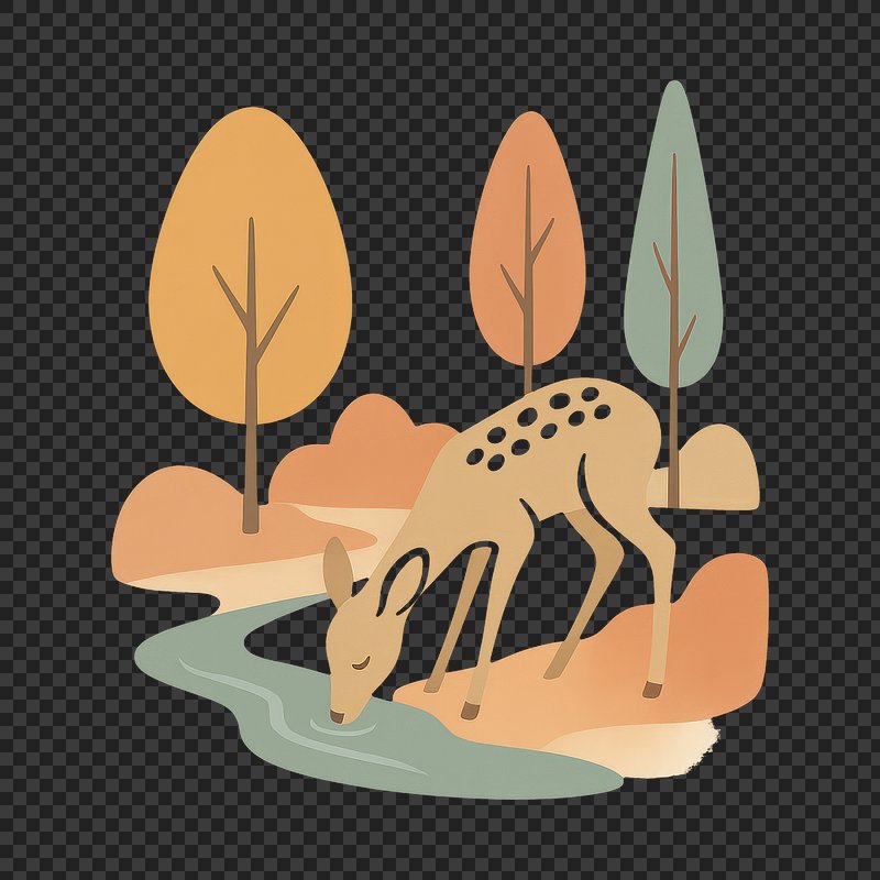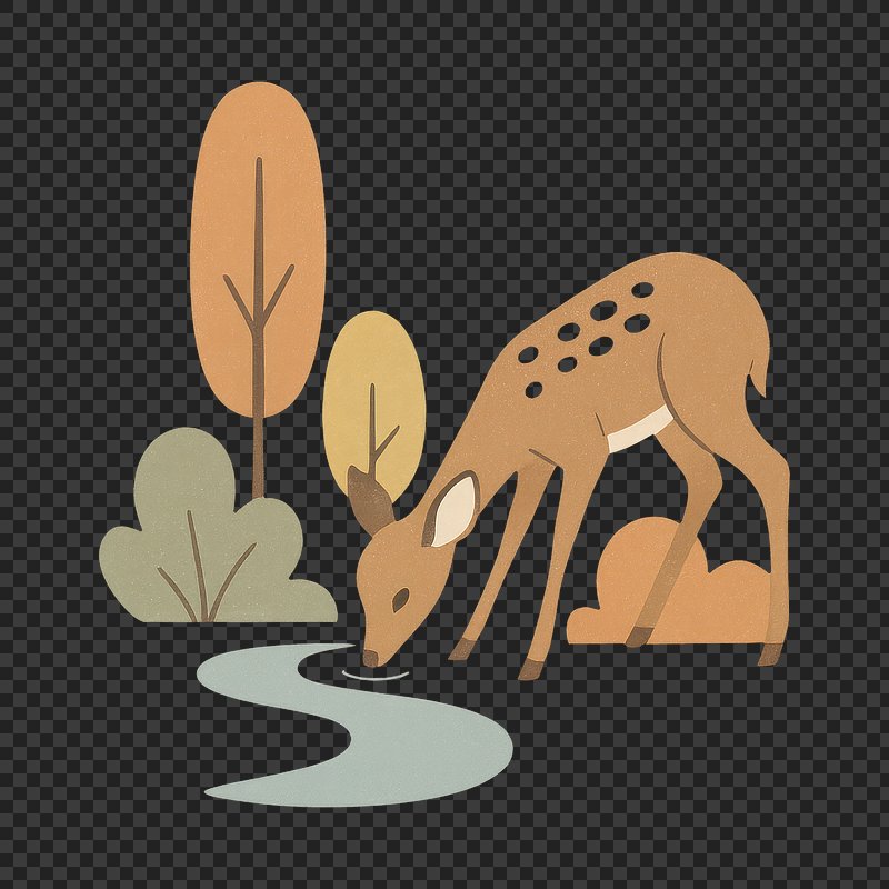 PNG Deer drinking forest stream painting. https://www.rawpixel.com/image/24121972/png-deer-drinking-forest-stream-paintingView license
