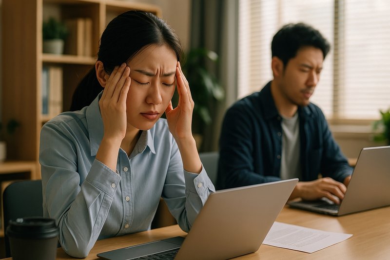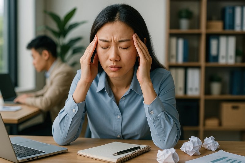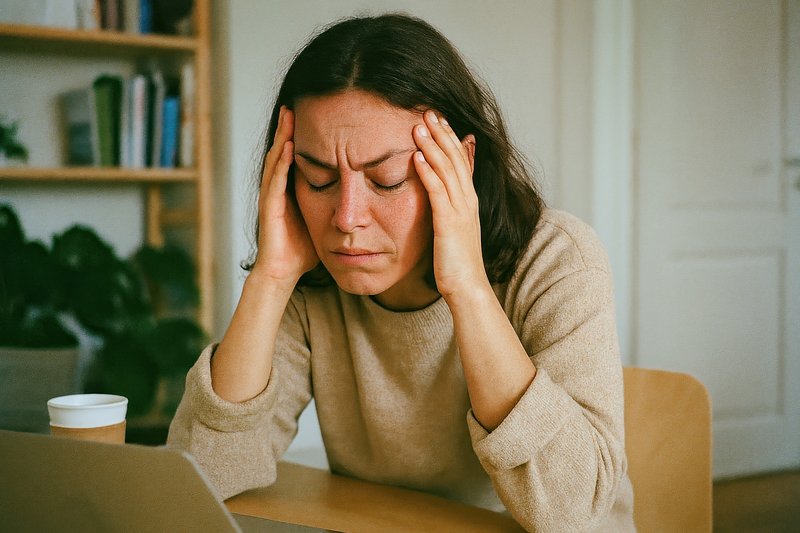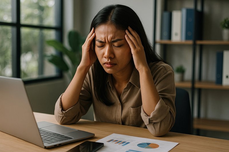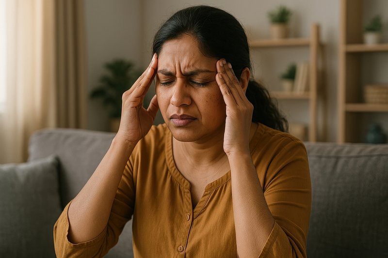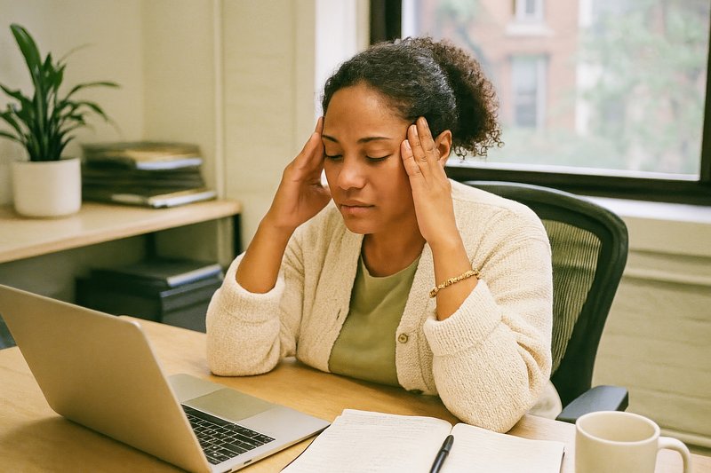 Woman experiencing stress headache. https://www.rawpixel.com/image/17369401/woman-experiencing-stress-headacheView license