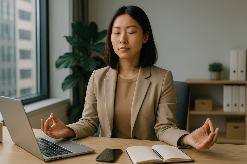 Calm office meditation practice. https://www.rawpixel.com/image/17679084/calm-office-meditation-practiceView license