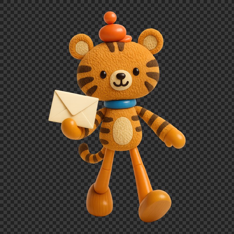 PNG Cute tiger holding envelope toy. https://www.rawpixel.com/image/18413540/png-cute-tiger-holding-envelope-toyView license