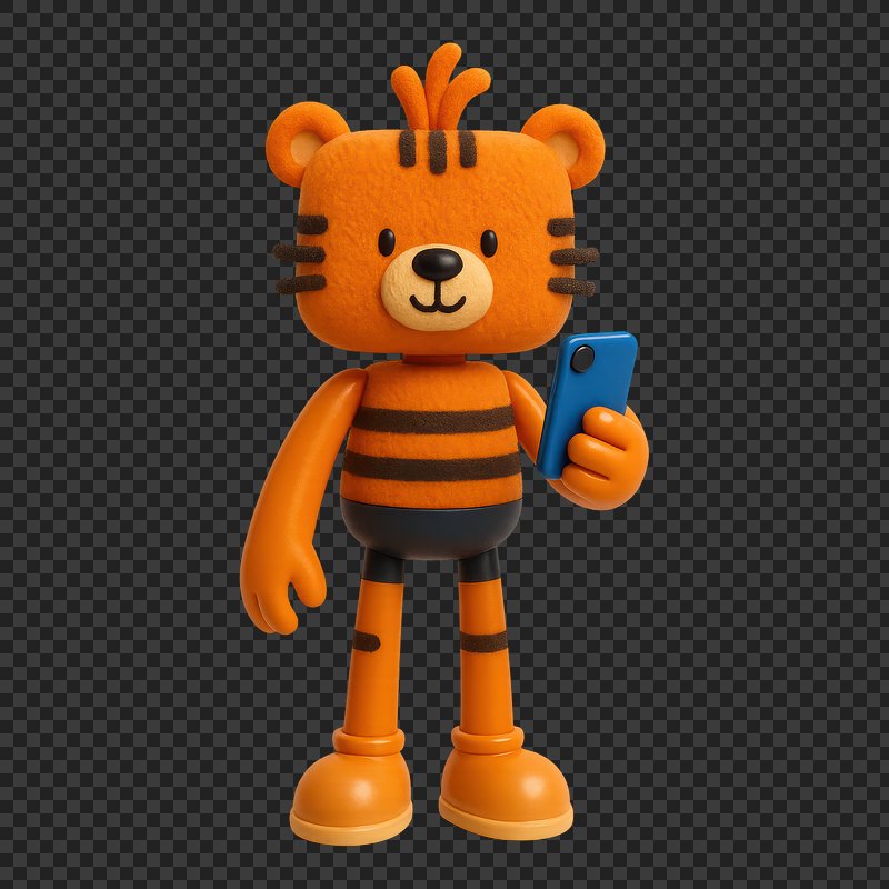 PNG Cute tiger cartoon character holding smartphone. https://www.rawpixel.com/image/18413507/png-cute-tiger-cartoon-character-holding-smartphoneView license