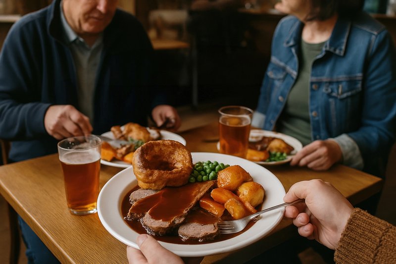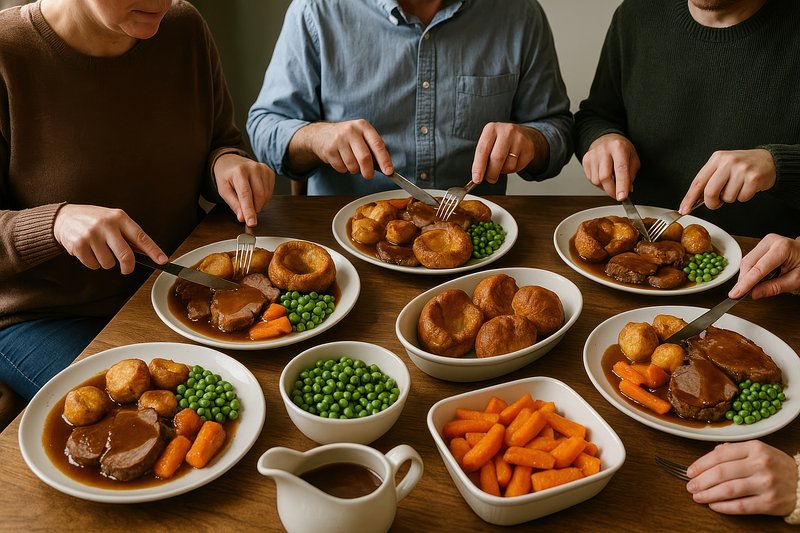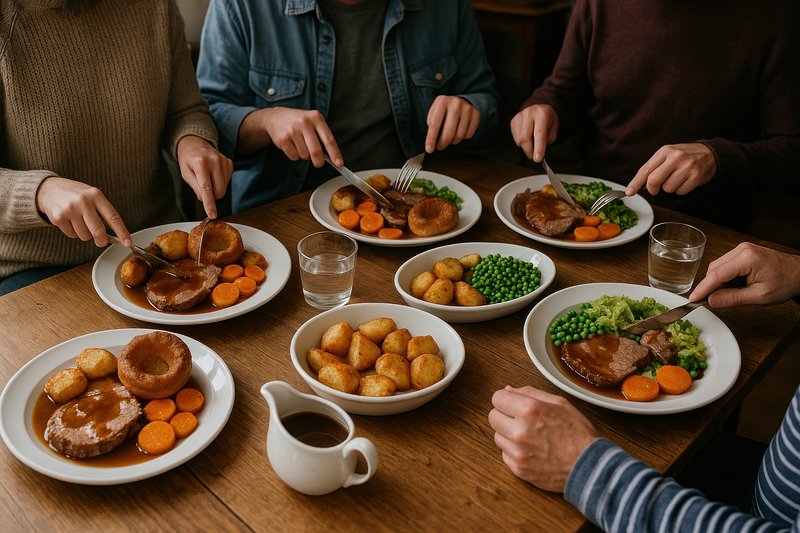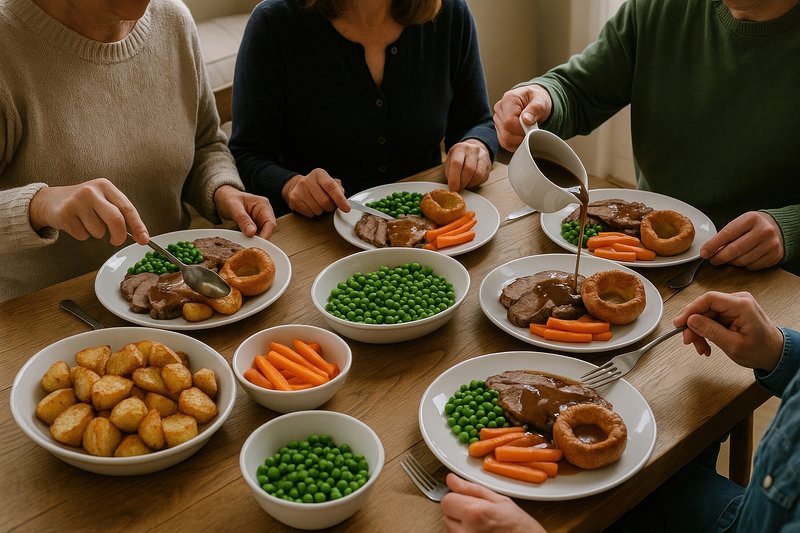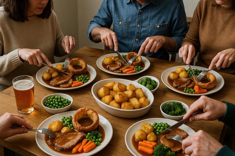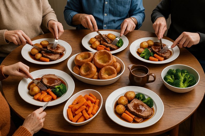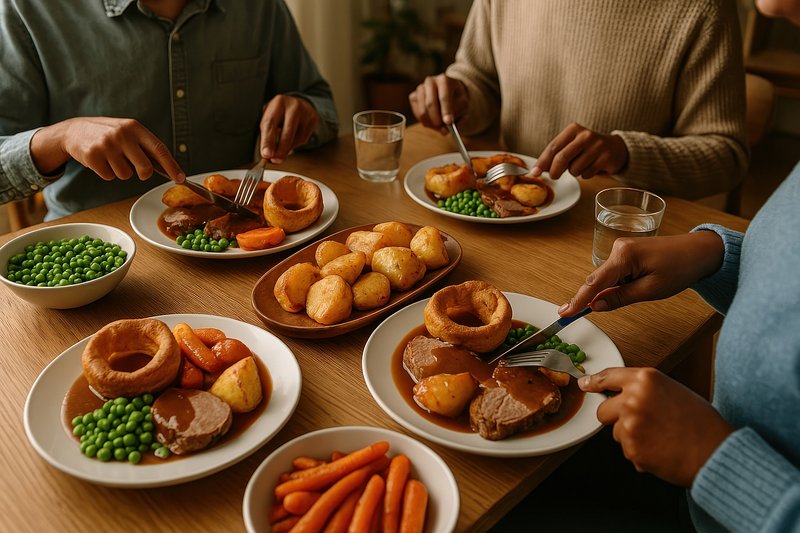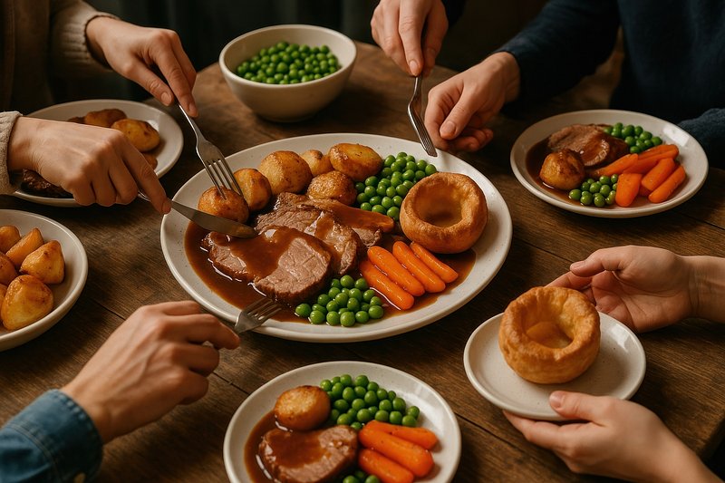 Traditional British Sunday roast dinner https://www.rawpixel.com/image/17525774/traditional-british-sunday-roast-dinnerView license