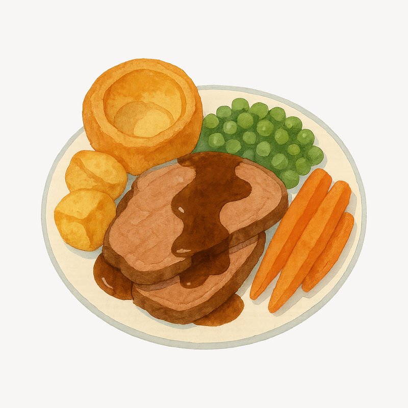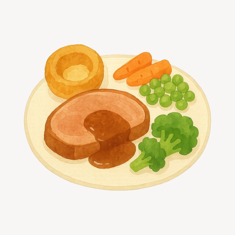 Classic British roast dinner illustration. https://www.rawpixel.com/image/19339766/classic-british-roast-dinner-illustrationView license