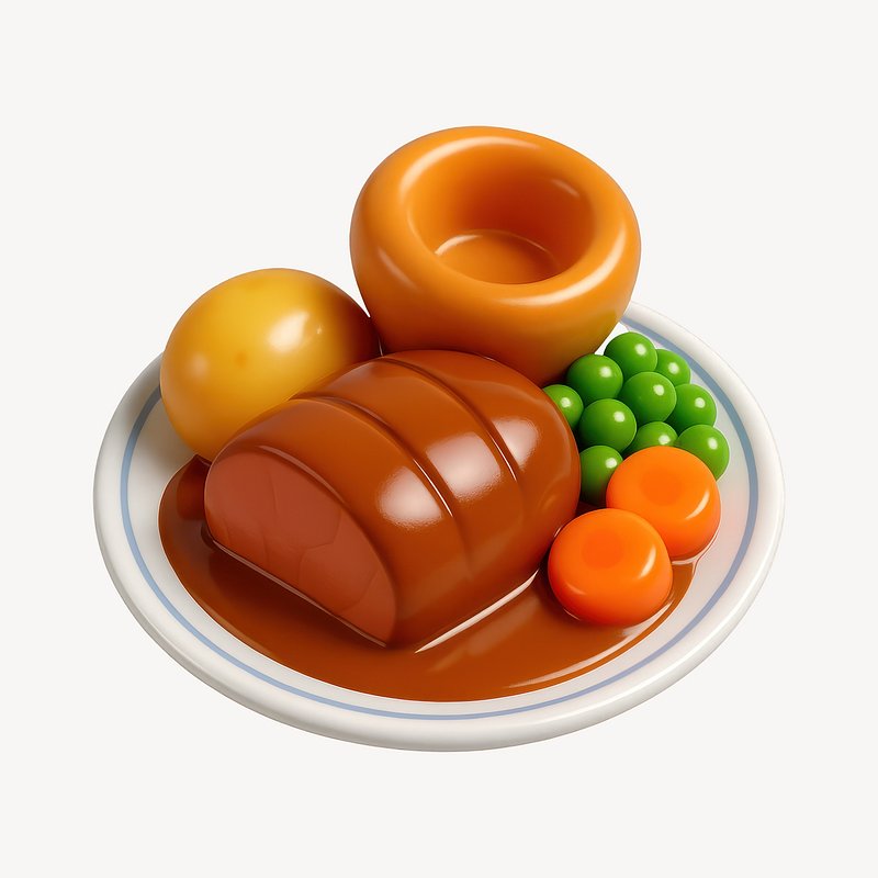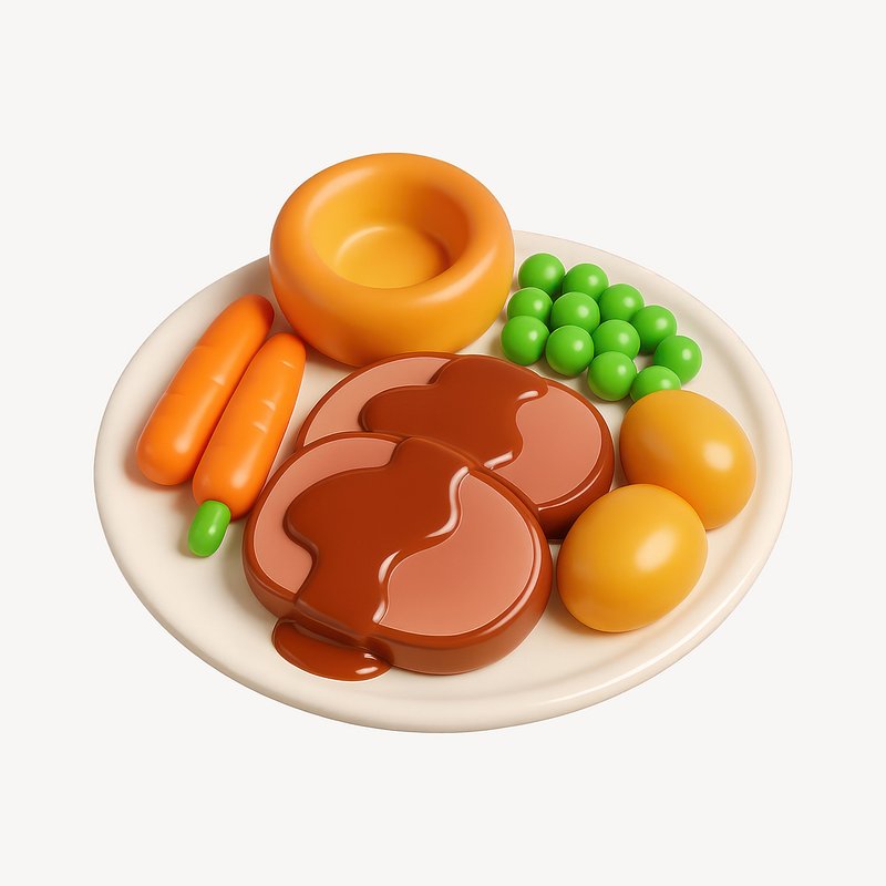 Colorful 3D roast dinner illustration. https://www.rawpixel.com/image/20628289/colorful-roast-dinner-illustrationView license