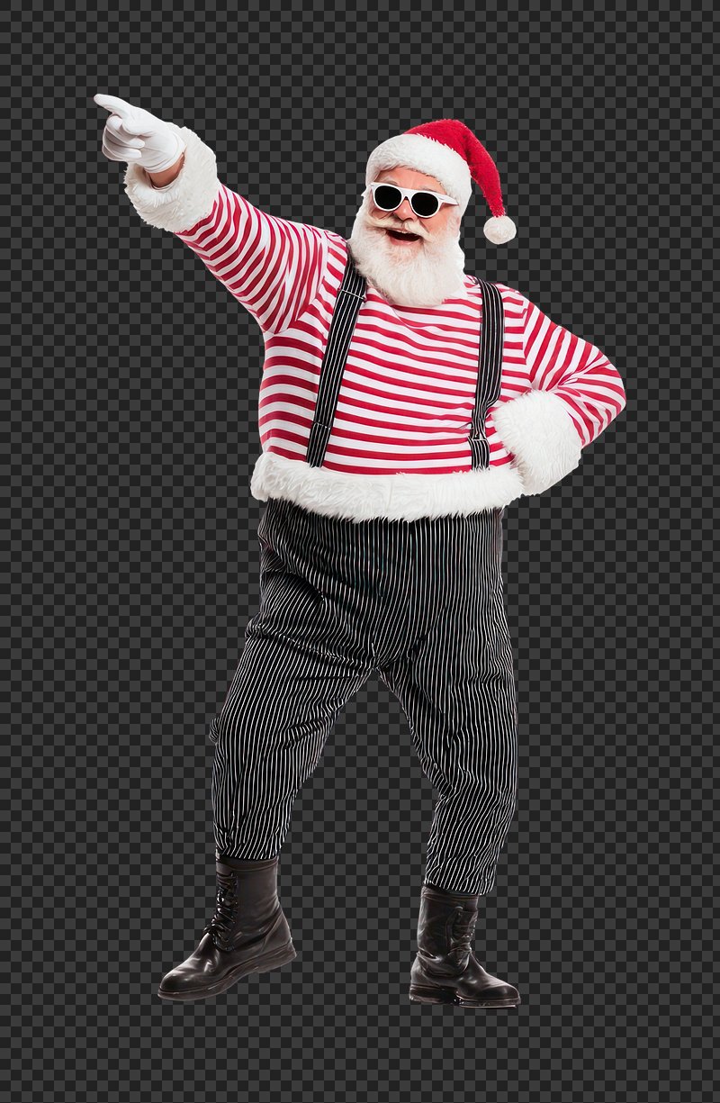 PNG Trendy Santa pointing joyfully. https://www.rawpixel.com/image/22827373/png-trendy-santa-pointing-joyfullyView license