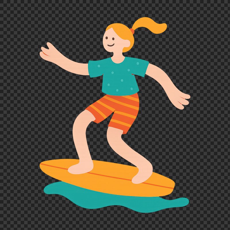PNG Colorful cartoon surfer girl illustration. https://www.rawpixel.com/image/23837734/png-colorful-cartoon-surfer-girl-illustrationView license