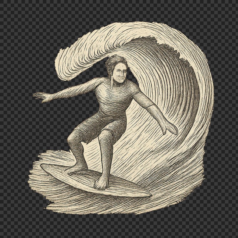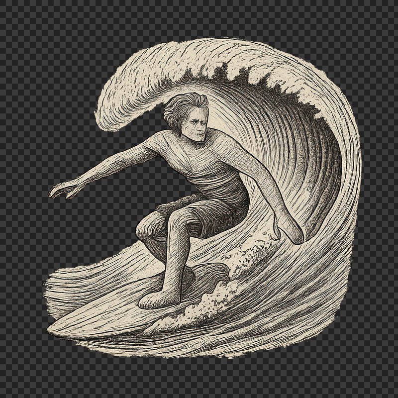 PNG Vintage surfer riding wave illustration. https://www.rawpixel.com/image/24140413/png-vintage-surfer-riding-wave-illustrationView license