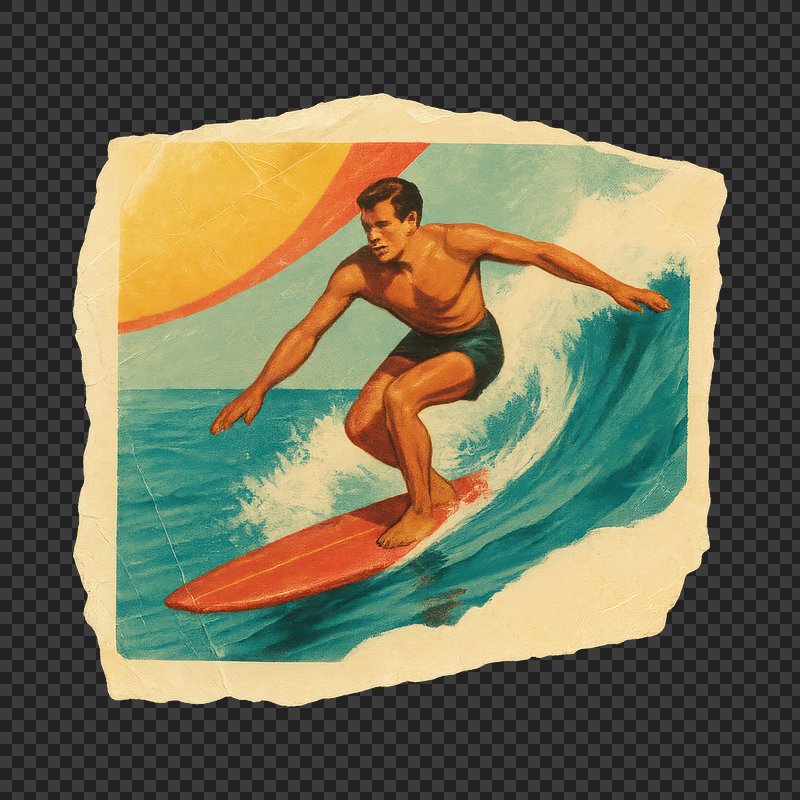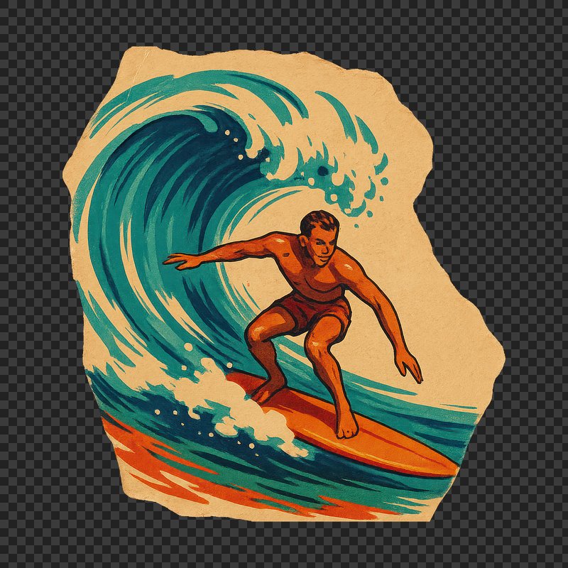 PNG Retro surfer riding ocean waves. https://www.rawpixel.com/image/23764217/png-retro-surfer-riding-ocean-wavesView license