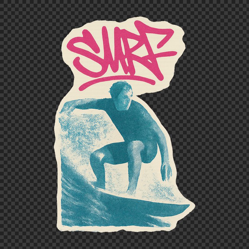 PNG Retro surfing sticker design. https://www.rawpixel.com/image/24516783/png-retro-surfing-sticker-designView license