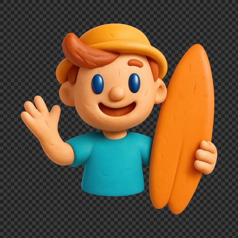 PNG Clay surfer character waving hello. https://www.rawpixel.com/image/24321972/png-clay-surfer-character-waving-helloView license