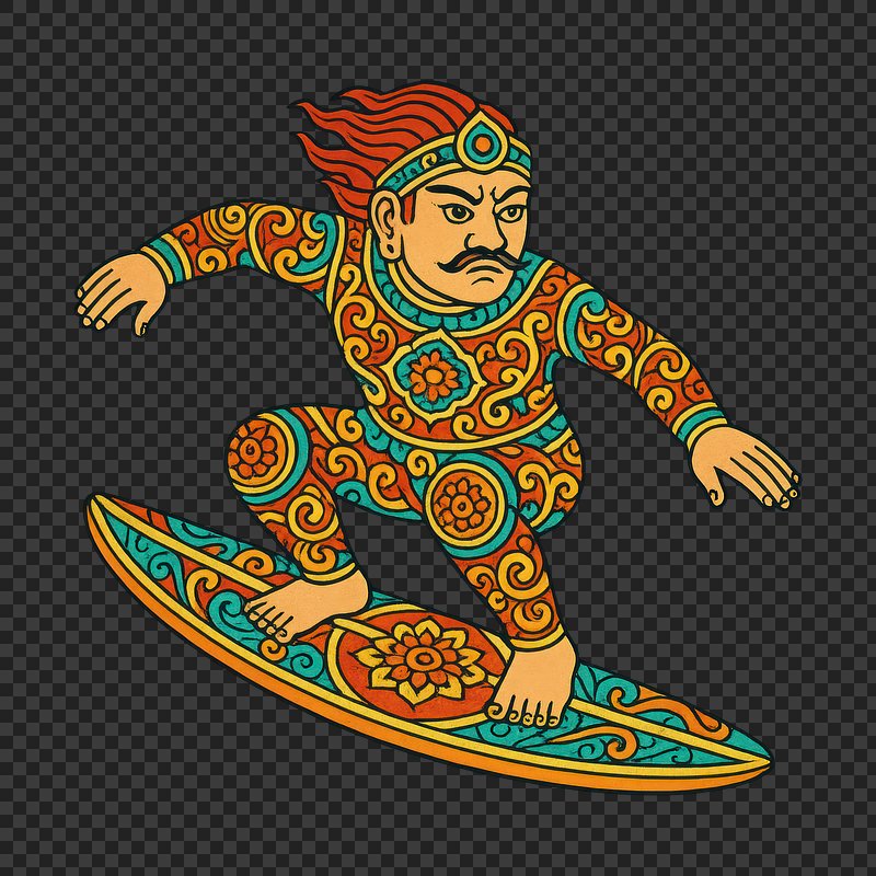 PNG Colorful mythical surfing warrior https://www.rawpixel.com/image/23942346/png-colorful-mythical-surfing-warriorView license