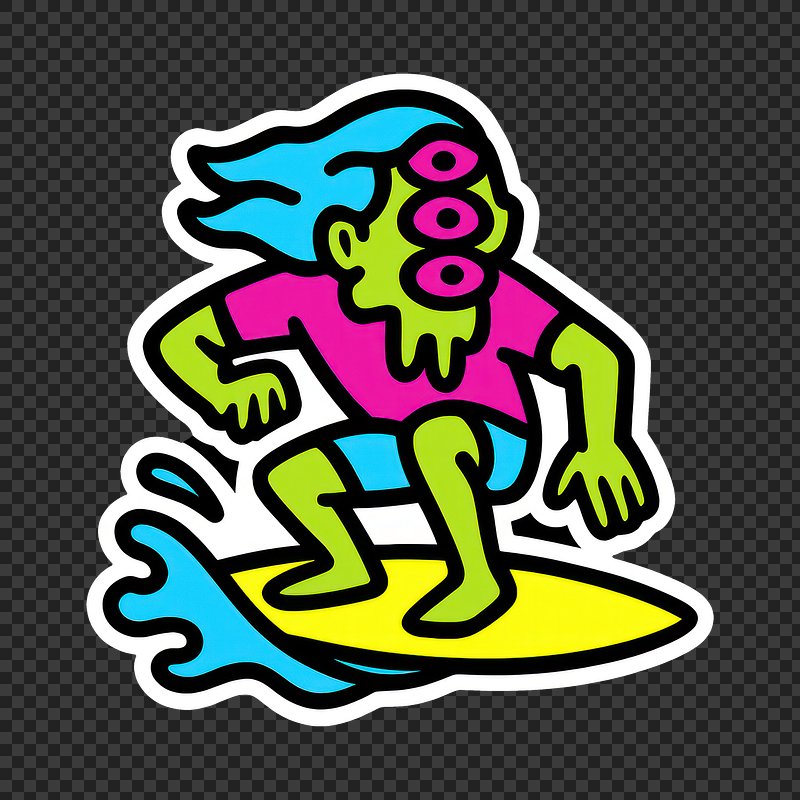 PNG Psychedelic cartoon surfing alien https://www.rawpixel.com/image/23947443/png-psychedelic-cartoon-surfing-alienView license