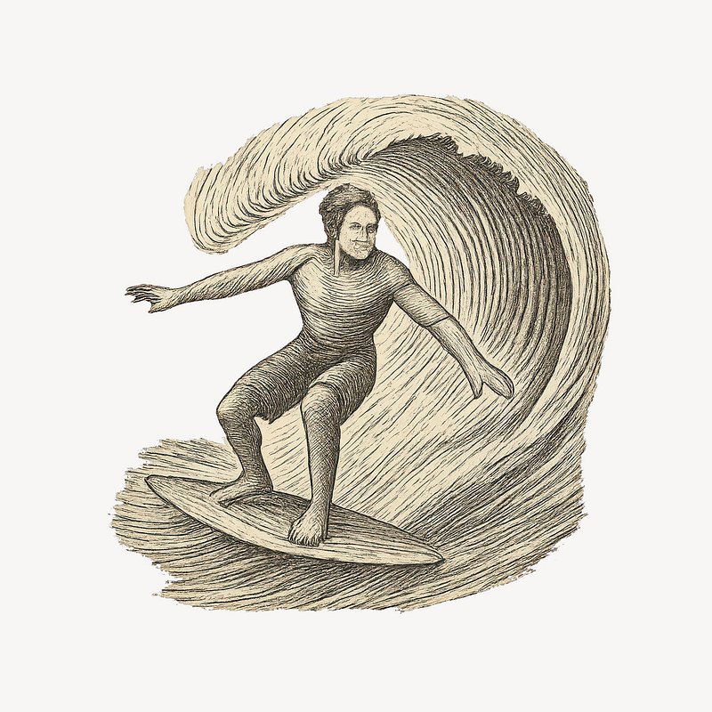 Surfer riding wave illustration. https://www.rawpixel.com/image/24340410/surfer-riding-wave-illustrationView license
