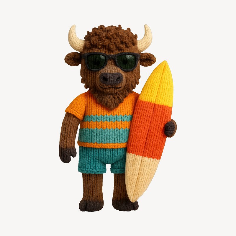 Knitted bison surfer toy https://www.rawpixel.com/image/24533939/knitted-bison-surfer-toyView license