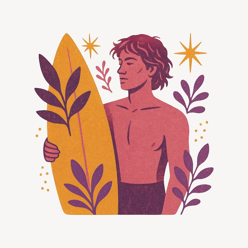Surfer illustration with tropical elements. https://www.rawpixel.com/image/24658287/surfer-illustration-with-tropical-elementsView license