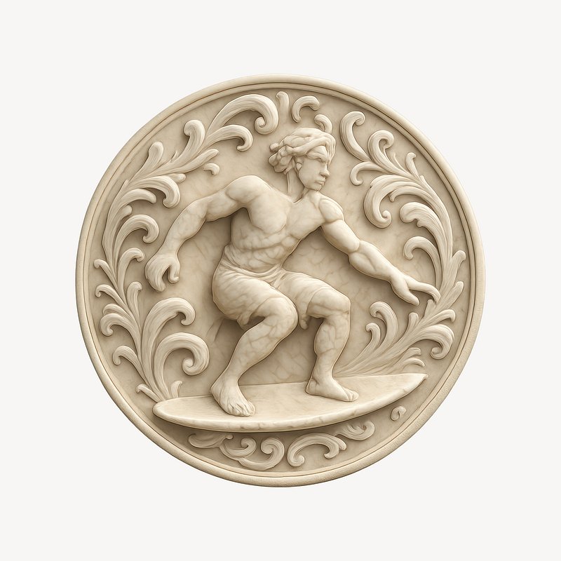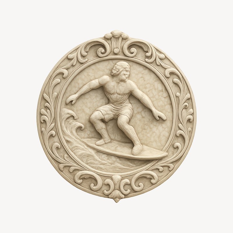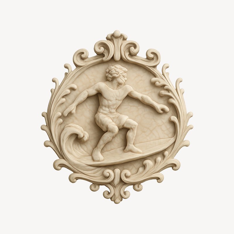 Ornate surfing relief sculpture design. https://www.rawpixel.com/image/24394799/ornate-surfing-relief-sculpture-designView license