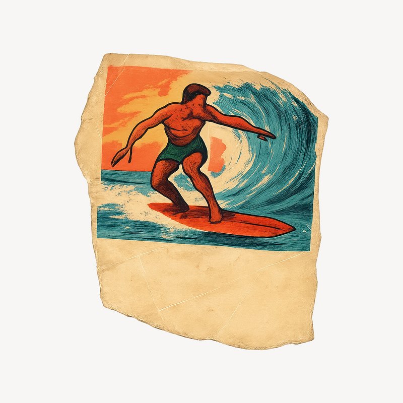 Surfer silhouette on abstract collage. https://www.rawpixel.com/image/24494734/surfer-silhouette-abstract-collageView license