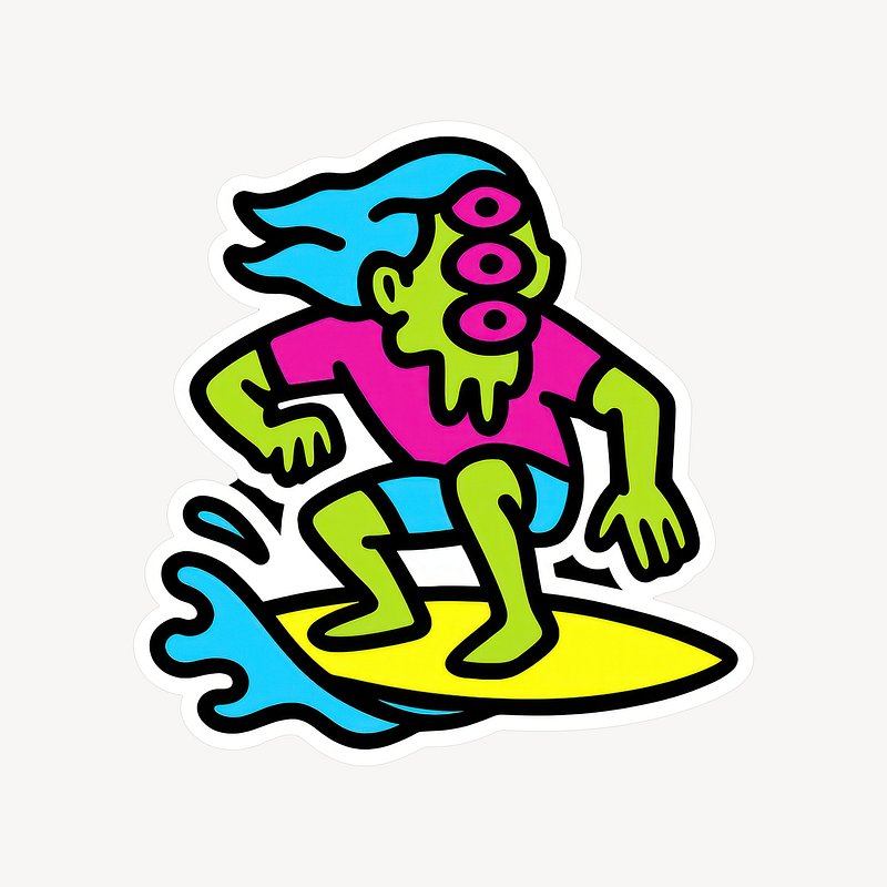 Colorful cartoon surfing monster https://www.rawpixel.com/image/24074899/colorful-cartoon-surfing-monsterView license