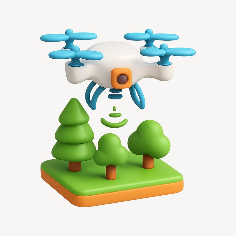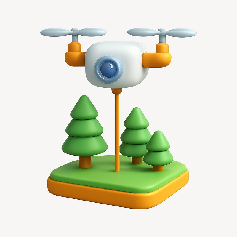 Whimsical drone with cartoon trees. https://www.rawpixel.com/image/20992838/whimsical-drone-with-cartoon-treesView license