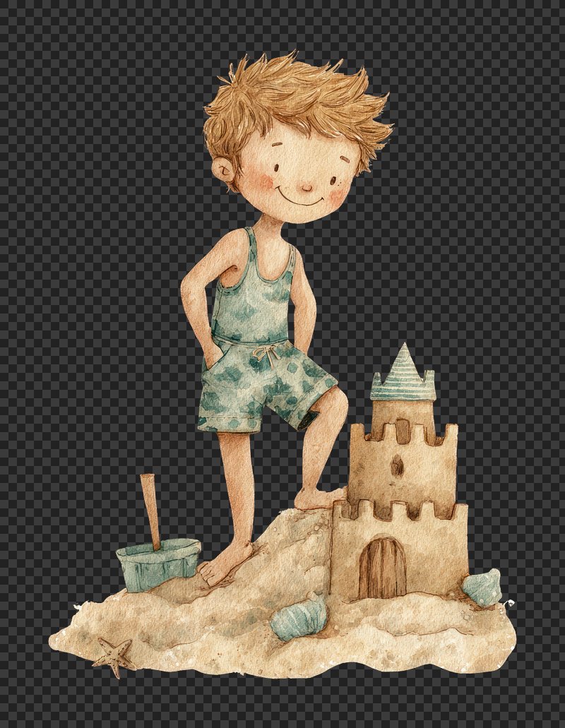PNG Child beach fun watercolor illustration. https://www.rawpixel.com/image/25558671/png-child-beach-fun-watercolor-illustrationView license