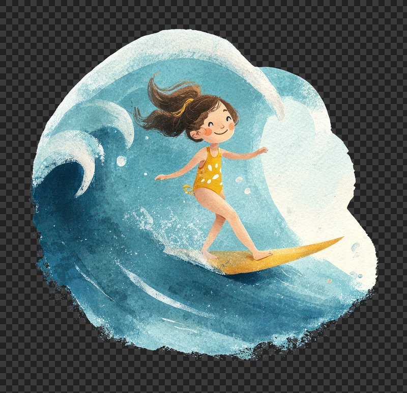 PNG Joyful surfer girl illustration. https://www.rawpixel.com/image/25558918/png-joyful-surfer-girl-illustrationView license