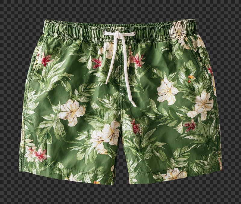 PNG Floral swim shorts, tropical style. https://www.rawpixel.com/image/25814774/png-floral-swim-shorts-tropical-styleView license