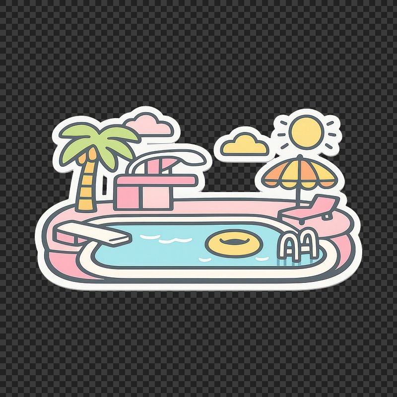 PNG Vibrant poolside fun illustration. https://www.rawpixel.com/image/25429199/png-vibrant-poolside-fun-illustrationView license