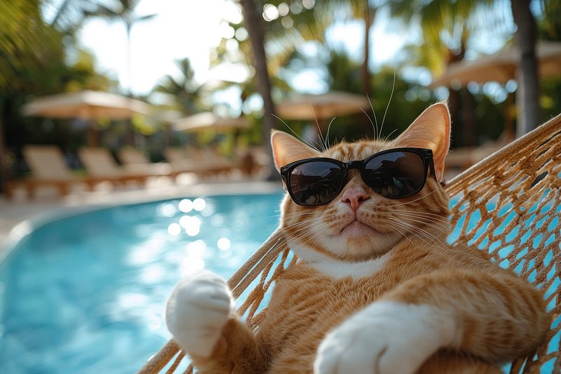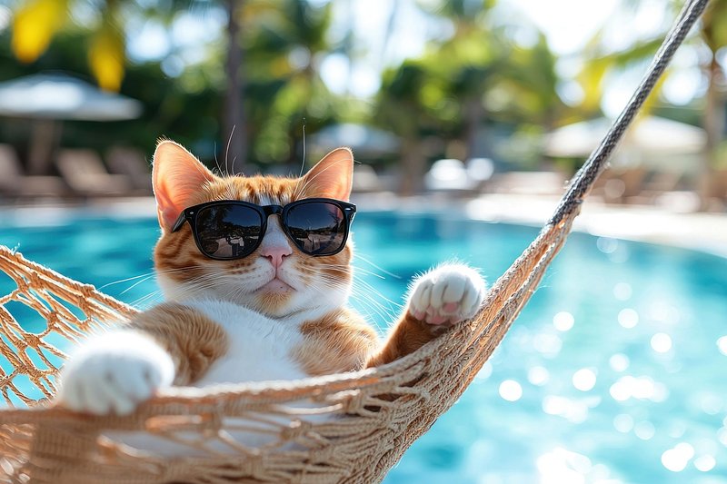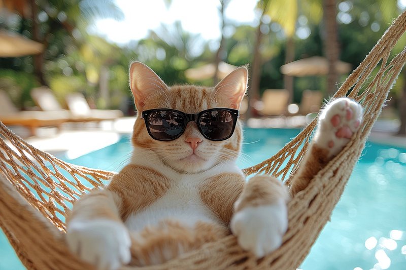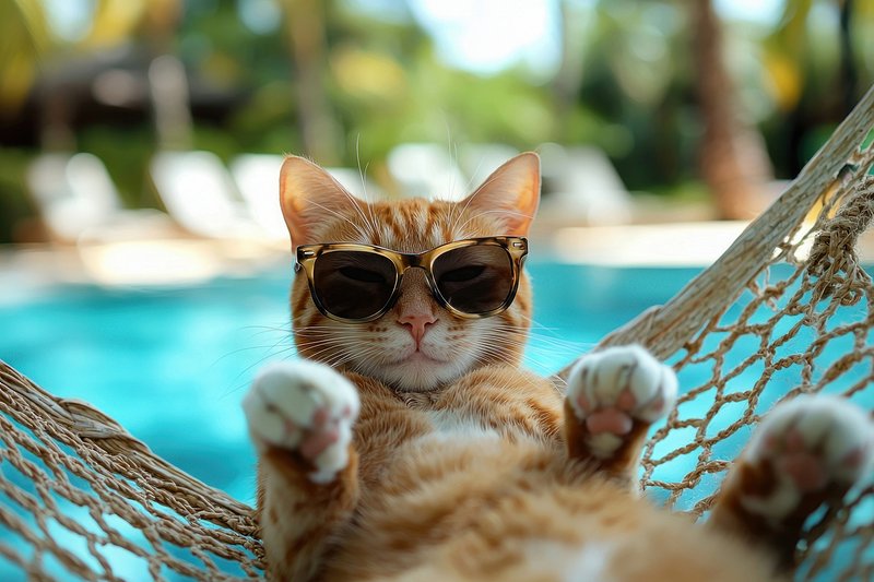 Cool cat relaxing poolside hammock https://www.rawpixel.com/image/25629232/cool-cat-relaxing-poolside-hammockView license