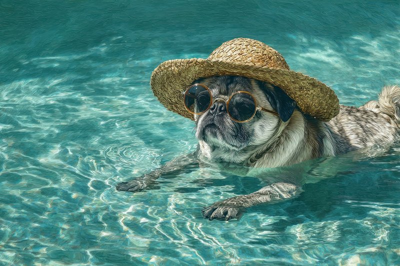 Pug relaxes in pool. https://www.rawpixel.com/image/25464501/pug-relaxes-poolView license