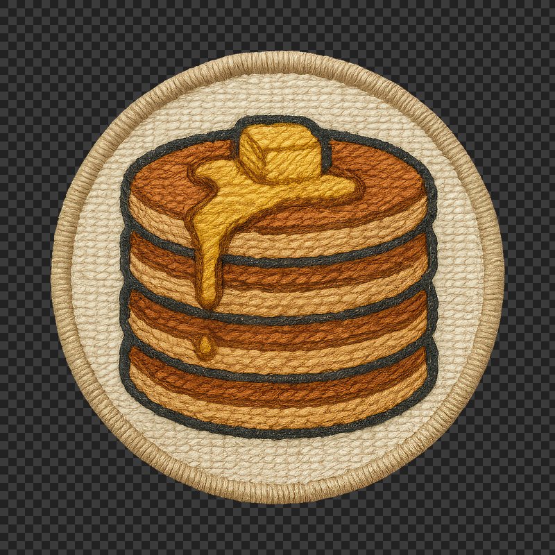 PNG Embroidery pancake patch illustration https://www.rawpixel.com/image/24370018/png-embroidery-pancake-patch-illustrationView license
