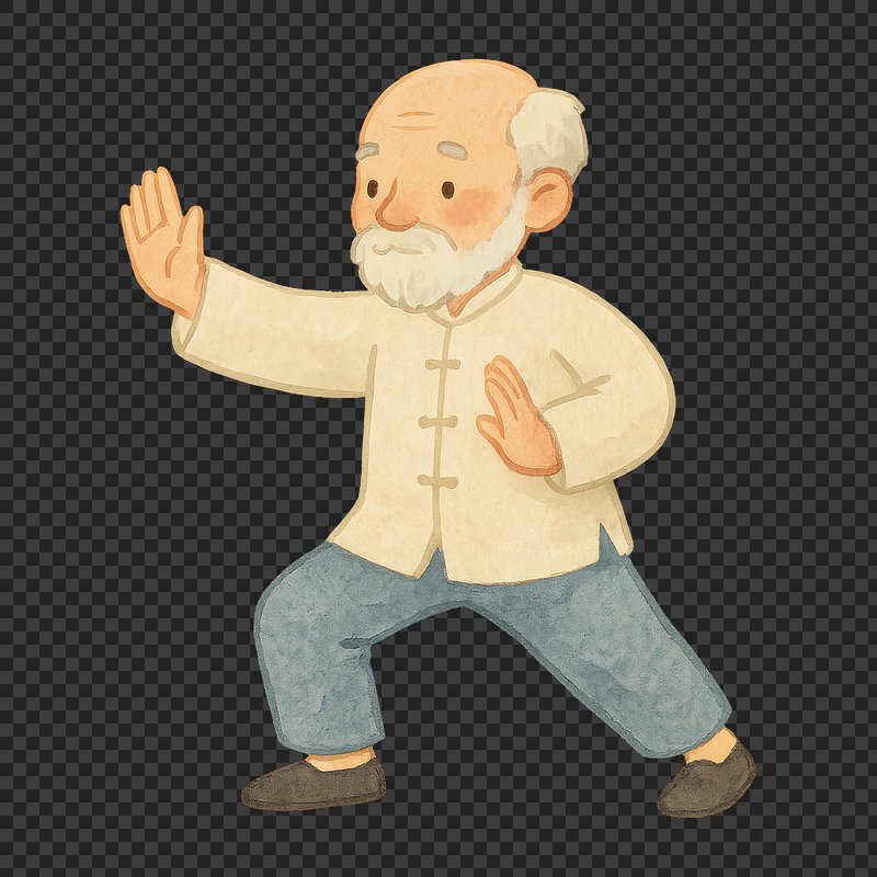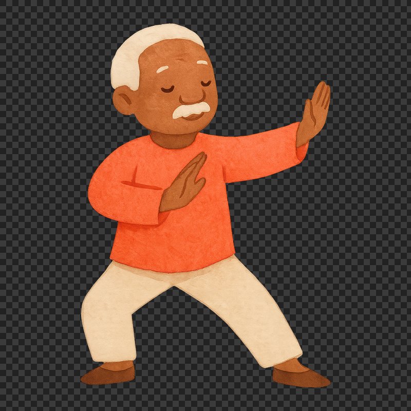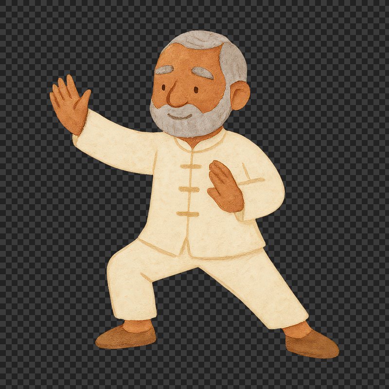 PNG Elderly character practicing Tai Chi. https://www.rawpixel.com/image/20267179/png-elderly-character-practicing-tai-chiView license