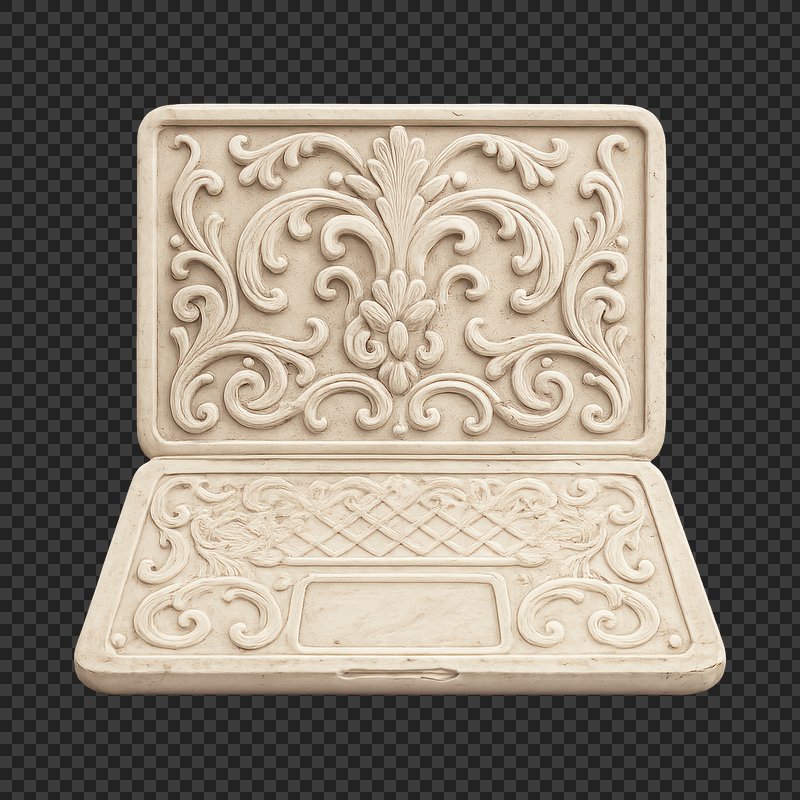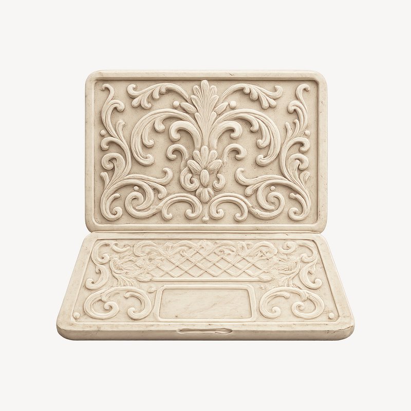Ornate carved stone laptop design. https://www.rawpixel.com/image/24396385/ornate-carved-stone-laptop-designView license